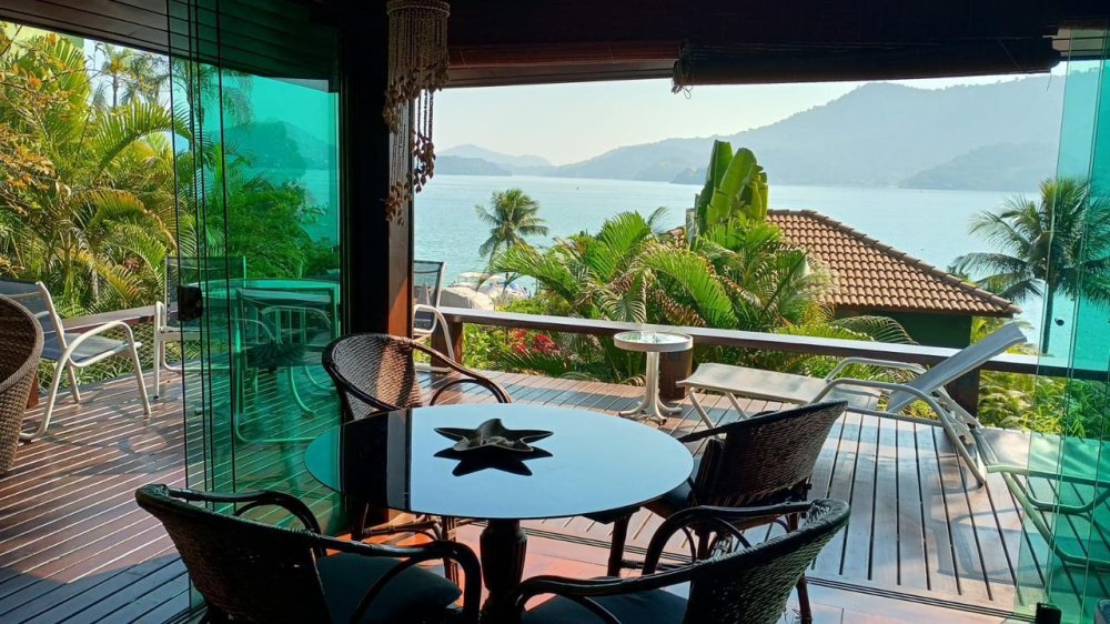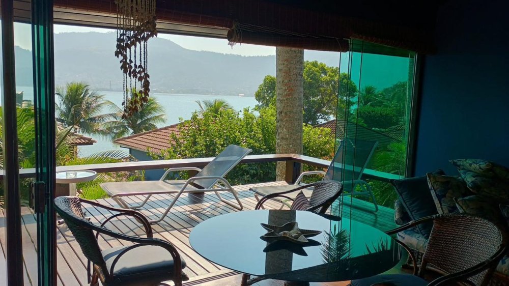 - A casa está equipada com piscina, varanda com vista para o mar, churrasqueira e salão de jogos.