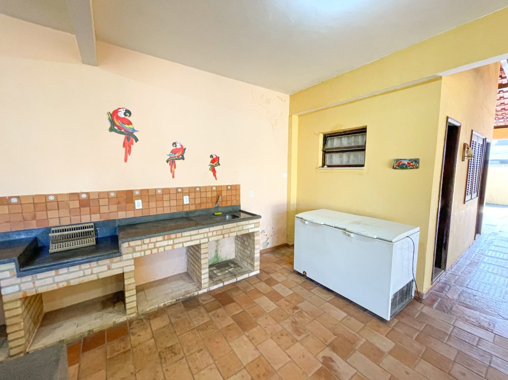 -Área gourmet completa: churrasqueira, freezer, mesas, cadeiras e banheiro de apoio.